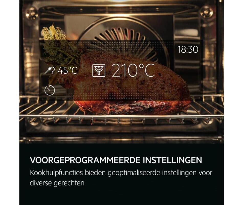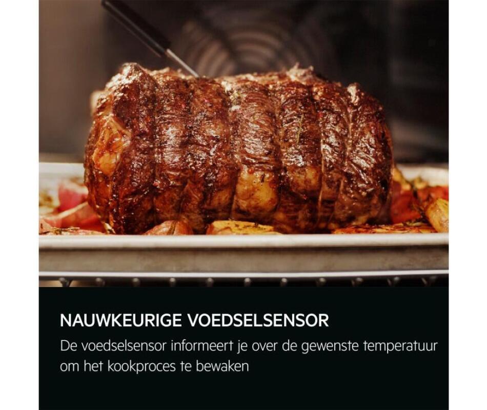 Met de geïntegreerde kerntemperatuursensor bereid je elk gerecht precies zoals jij het wilt. De oven laat weten wanneer de ideale temperatuur bereikt is – voor perfecte resultaten, elke keer weer.