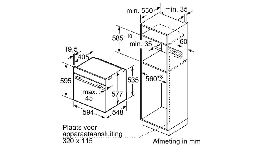 | Min. nisdiepte | 550 mm |