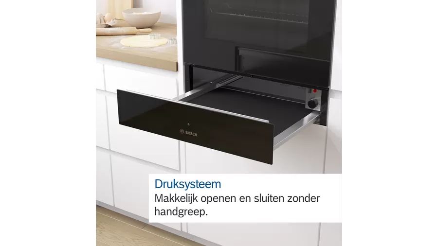 Open en sluit je lade in één vloeiende beweging met ons handige druksysteem. Het slim ontworpen veermechanisme maakt het gebruik van je lade nu nog makkelijker. Heb je je handen vol, of zijn ze vies? Gebruik dan je elleboog of heup om de lade in te drukken en te openen. En omdat je alle hoeken makkelijk kunt bereiken, is schoonhouden een fluitje van een cent.