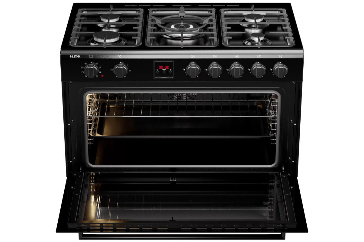 Dit Etna gasfornuis met oven FG190ZWA beschikt over vijf branders, waaronder een krachtige 3-rings wokbrander in het midden. Met een vermogen tot 3,6 kW is deze brander perfect voor roerbakken en andere intense kooktechnieken. De andere branders bieden een verscheidenheid aan kookmogelijkheden, van sudderen tot snel koken. Bovendien zorgt de vlambeveiliging ervoor dat de gastoevoer automatisch stopt als de vlam dooft, wat de veiligheid vergroot.
