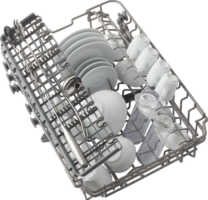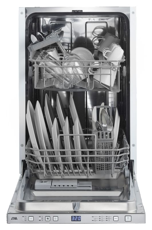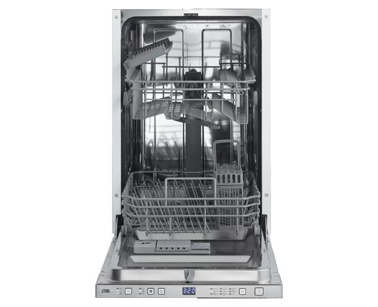 De ETNA VW47SM geïntegreerde vaatwasser is met een breedte van 45 cm bescheiden in formaat maar royaal in comfort en gemak. Zo heeft de vaatwasser maar liefst negen verschillende programma’s, variërend van snel spoelen tot eco of juist intensief. Daarnaast geeft de vaatwasser je keuze uit vijf reinigingstemperaturen, in te stellen op het RVS bedieningspaneel. De VW47SM biedt ruimte aan negen couverts maar is ook op halve belading in te stellen wanneer je wat minder afwas hebt. De start van een wasprogramma is tot 24 uur uit te stellen, zodat alles klaar is wanneer het je het beste uitkomt. De vaatwasser controleert automatisch of er voldoende zout en glansmiddel is en heeft een digitaal display met resttijdindicatie. Tot slot droogt deze luxe vaatwasser met restwarmte, wat energie bespaart en bovendien sneller is.