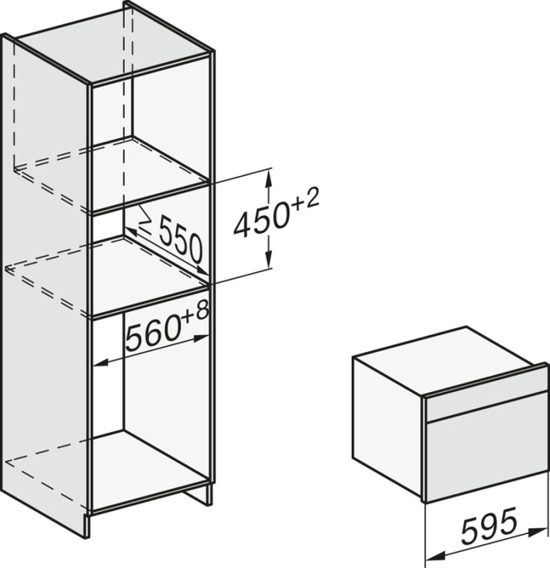 | Min. nisdiepte | 550 mm |
