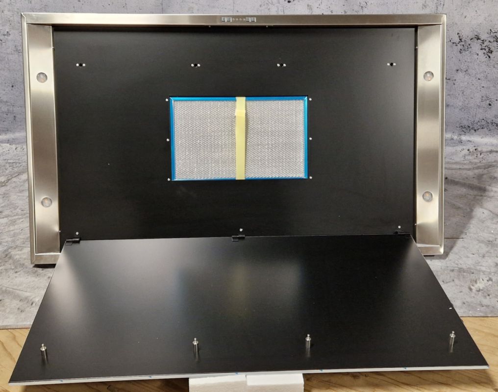 Zonder verloopstuk, Rechtsbovenop een deukje en wat vlekjes in het rvs bovenop.