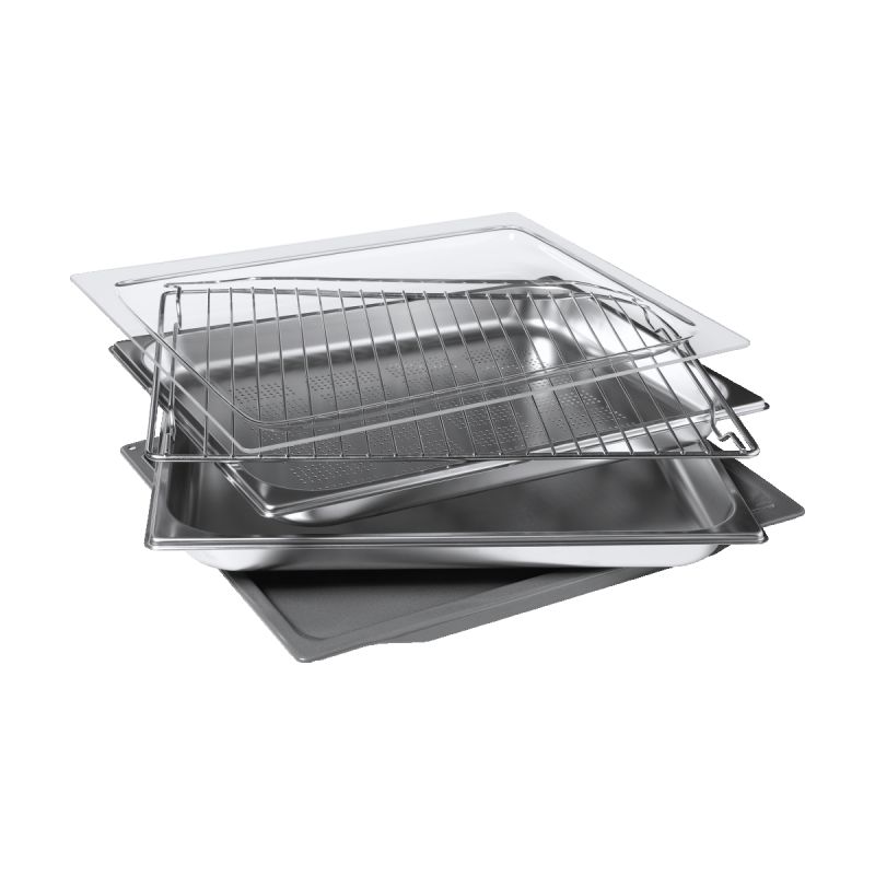 | Meegeleverde accessoires | Rooster (s), Bakplaat (en), Glazen bakplaat, stoomschaal met gaatjes, stoomschaal zonder gaatjes |