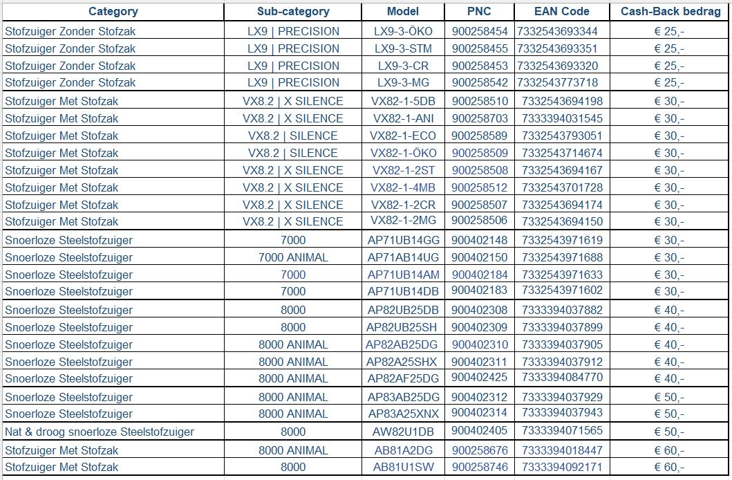 TOT € 60,- CASHBACK BIJ GESELECTEERDE AEG STOFZUIGERS