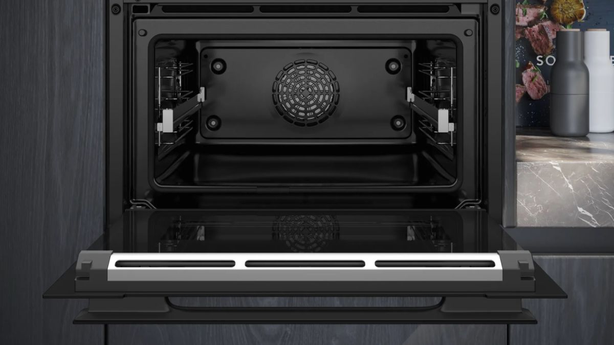 Perfect voor een snelle schoonmaak tussendoor: met humidClean Plus is het reinigen van je oven makkelijker dan ooit. Voeg een druppel afwasmiddel toe aan 400 ml water. Deze spoeloplossing giet je in het midden van de volledig afgekoelde bodem van het kookcompartiment. Stel het reinigingsprogramma humidClean Plus in en laat de oven de rest doen. Zodra het programma klaar is, kun je het vuil dat door de damp is opgenomen gemakkelijk verwijderen met een vaatdoekje of een zachte borstel.